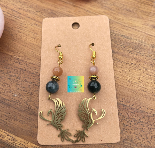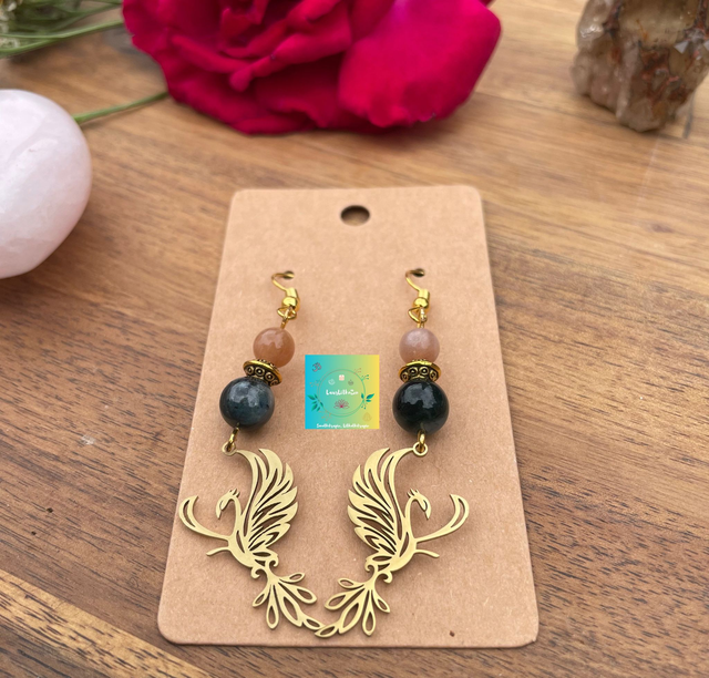 🌞🌊 Boucles d'oreilles Sphinx en Pierre de soleil et Cyanite