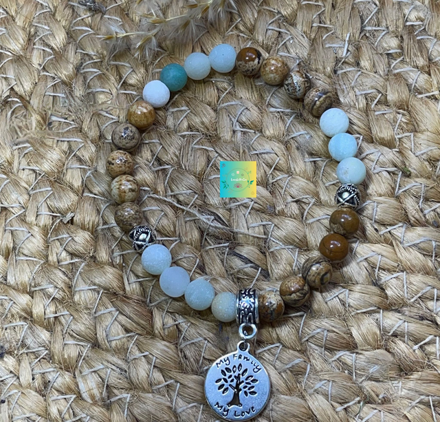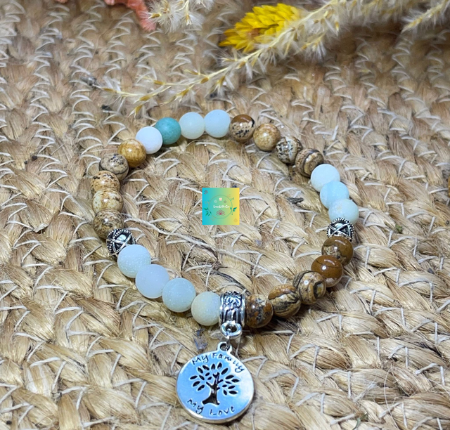🪶🏜Bracelet en Amazonite givrée et Jaspe paysage