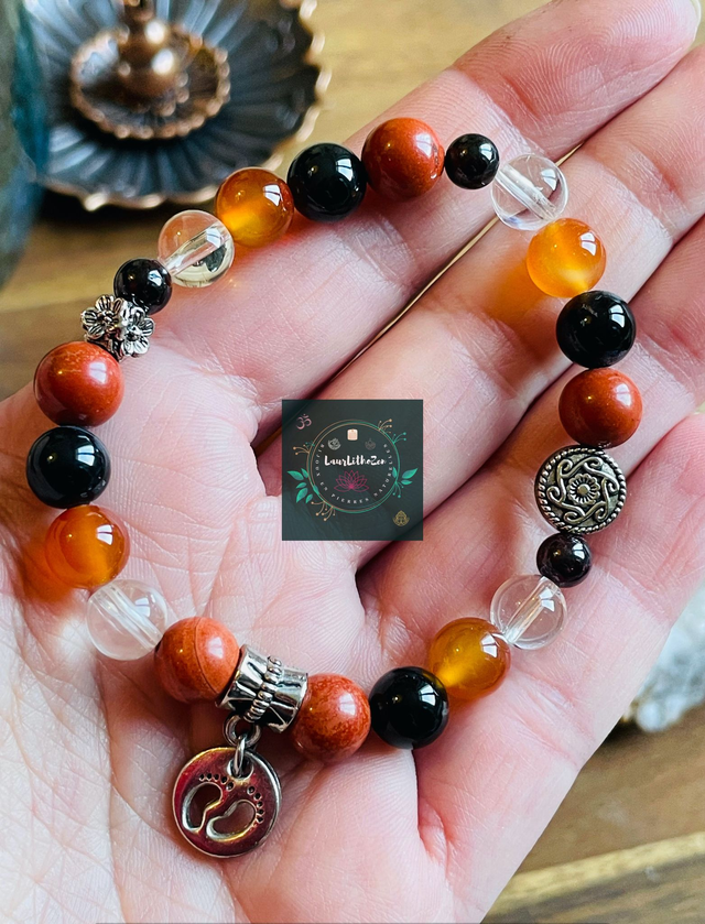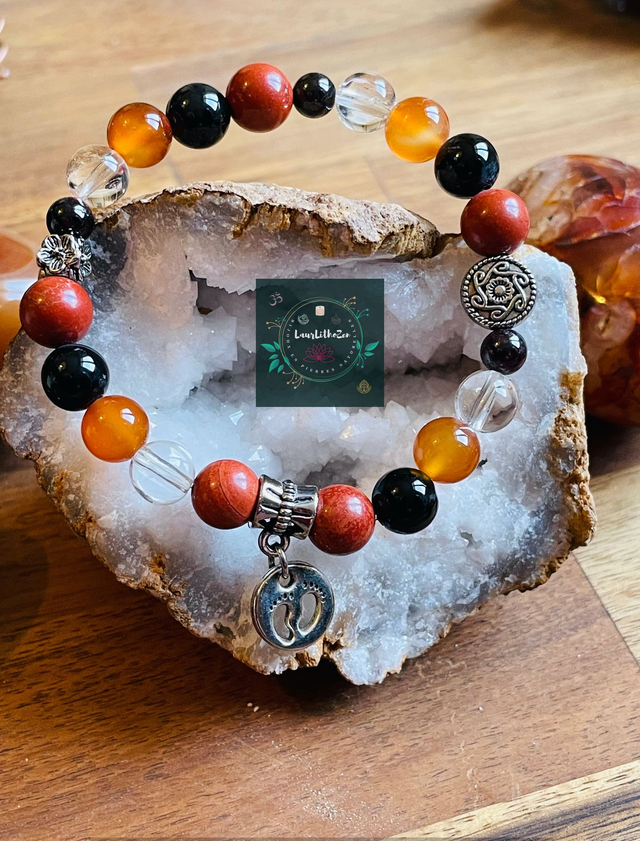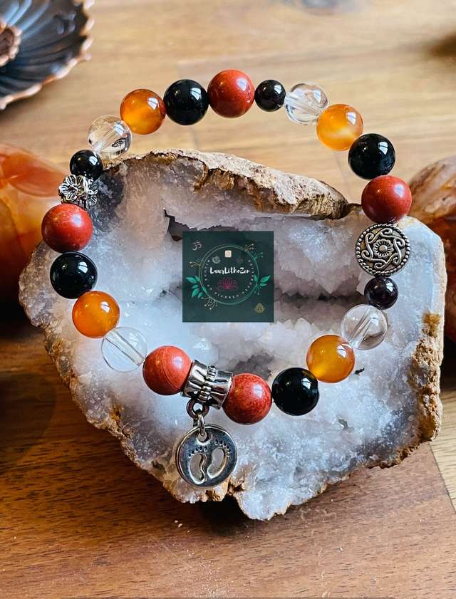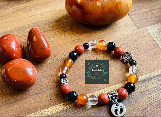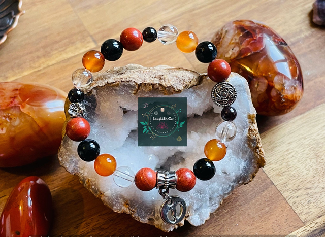 Bracelet en Cornaline - Cristal de roche - Jaspe rouge et Onyx