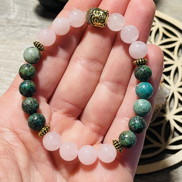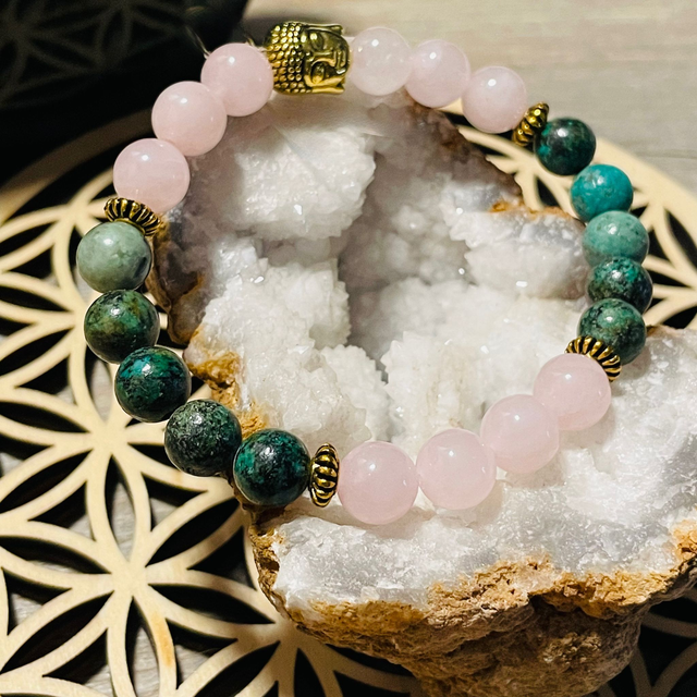 🪷🌍 Bracelet en Quartz rose et Jaspe Turquoise Africaine
