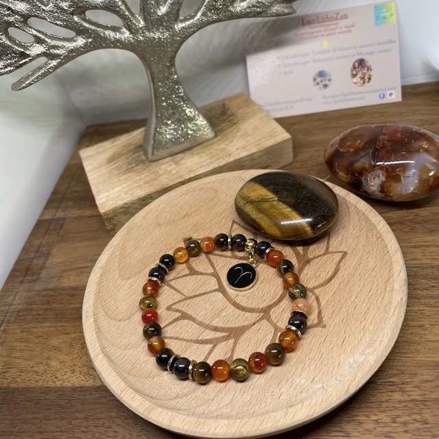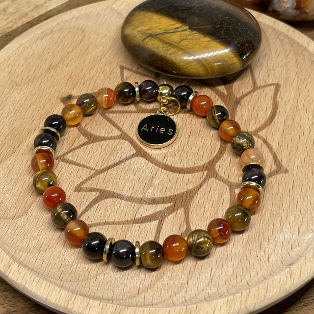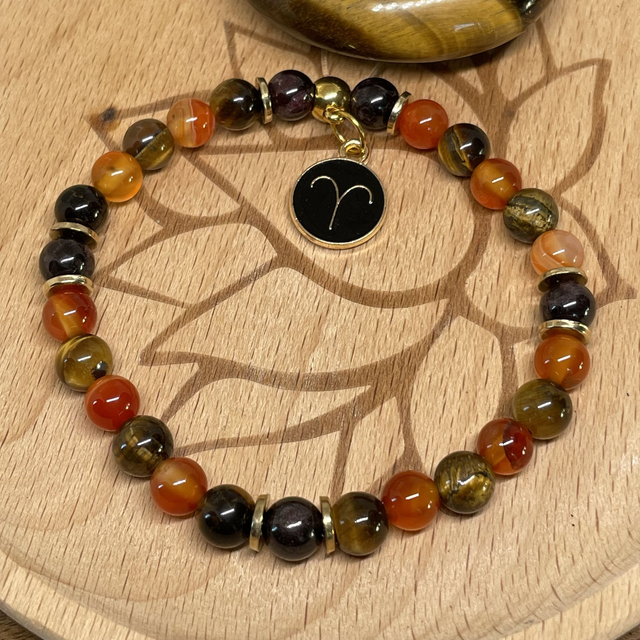 🌺♈️🍁Bracelet Signe Bélier Cornaline, Oeil de tigre, Grenat